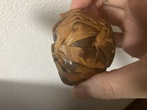 手作業で作られた表面のヒダが美しい、焼きモンブラン。トースターで2分・余熱で1分冷ますとのことです。この1分冷ます工程がとても重要に感じました。なぜなら、、そのおかげで本当にパリッと出来立てのような美味しさが味わえるからです! 中には大きな一粒の栗♪アーモンド風味のしっとりした生地とパリッと食感と栗。相性抜群でペロリと食べられてしまう美味しさです!