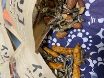 アーモンド、くるみ、カシューナッツそれぞれ無塩なので小魚の味を引き立てていました。