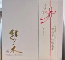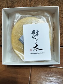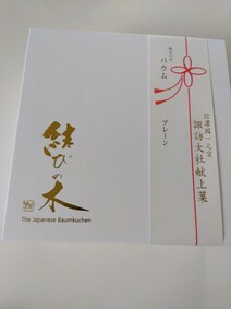「結びの木」という文字が目を引き、「諏訪大社献上菓」という言葉が、高級感があり縁起も良さそうな箱にバウムクーヘンは入っています。