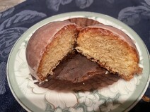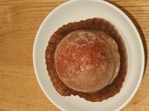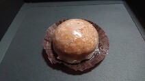 茶色のまん丸なフォルムに薄っすらとアイシングがされています。
