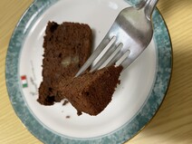 一口目、口の中に入れた瞬間に、開封時以上のチョコレートの香りと、口の中のケーキのほろほろ感、食感のアクセントになるクルミの食感が包んでくれます。甘さは優しく、食感も思ったより軽いので6等分して一切れ食べたのですがもっと食べたくなってしまいました。生クリーム、チョコレート、バターと原料だけ見れば「思いかな?」と感じてしまうのに王道ガトーショコラの魔力は恐ろしいです…。あっさり一切れ完食して、お供のお茶で余韻を味わっていました。