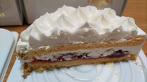 クリームショコラケーキ、こちらもまろやかな、優しい口当たりとお味のチョコのクリームです。クリーム感を感じるチョコ。チョコ好き、生クリームやミルク好きの方、お子様には特に喜ばれそう、お勧めしたいです。スポンジとの間にもショコラクリームが挟んであり、こちらも丁度良い絶妙な量で、ふわっと口の中でスポンジと一緒にとろけます。