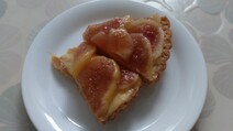 とても甘いのですが全然くどくなく、青臭さも無いので後味が爽やかです。切らずに丸ごと食べても飽きる事なく食べられそうでした。カスタード部分との味の調和もとても良く、タルト生地も厚くてサクサクしていてとても美味しかったです。子供も喜んで食べていました。