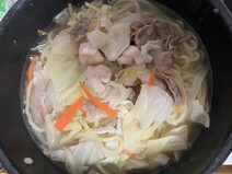 そして野菜もコゲが出るくらい炒めて、スープを入れると完成