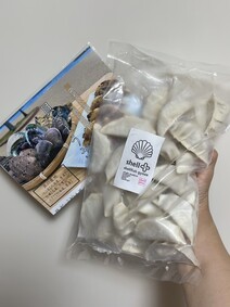まず何も付けなくてもちゃんと味がついているので、そのままでひと口味わいましたが、口の中に貝の甘みと食感もしっかり、お肉のジューシー感もありとっても美味しいです!何より普段食べる餃子とは全然違って、貝の食感も特に楽しめて歯応え抜群ですが子どもも食べれる柔らかさに大きすぎない大きさで、家族みんなで味わえました!!大人はその後タレをつけて頂き2度楽しむことが出来ました!ごはんも進み美味しかったです!