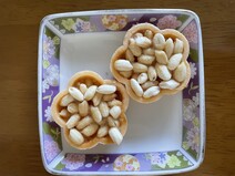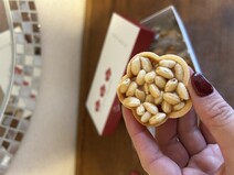 もち米から作るもなかの皮の中に、フロランタンベースのキャラメルとアーモンド、さらに米ハゼを入れたオリジナルの和スイーツ。