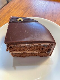 そして中のしっとりしたショコラ生地は、アーモンドの豊かな香りを感じられ、食べるたびに贅沢さを実感します。生地に挟まれたアプリコットジャムとチョコクリームが絶妙なバランスを生み出し、完成度の高い味わいです。