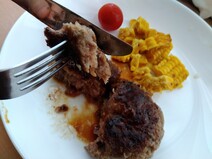 ハンバーグはふっくらジューシーで、牛肉の甘みがしっかりと感じられます。メンチカツは衣がサクッと、中は肉汁がじゅわっと溢れ出し、冷めても美味しくいただけました。