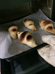パン屋さんにいるかのようなとってもいい香りに包まれ、元の生地の約2倍位になったクロワッサンが焼き上がりました。家でもパン屋さんのいい香りに包まれるあの幸せを味わえるなんて!と感動しました。