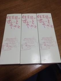 指定の日の朝一で届けていただきました。袋の中に白い筒状の箱がありスィートポテトが入っている箱が3つ入っていました。中を開けると綺麗に丁寧にスイートポテトが一箱に5個入っていました。