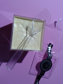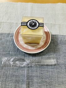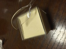 この江戸流行婦凛ならではの四角いプラ容器がとても素敵です。付属のスプーンはリーフ型スプーンと言って、このプリンの四角い容器の特殊な形の角までしっかりすくって食べられる仕様になっています。