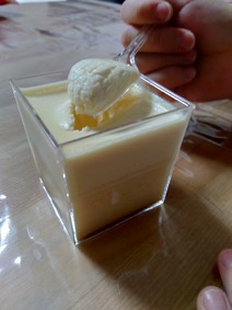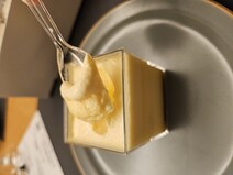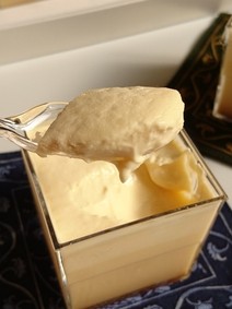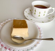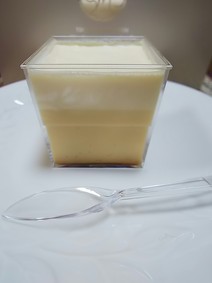 では早速食べてみましょう。プリンの上層部は濃厚でコク深く滑らかなトロリとした生クリームの風合いを楽しめます。下層部は卵の風味を強く感じるぷりんぷりんの蒸しプリンの食感です。そしてサラッとしたカラメルのほんのりとした苦味がアクセントとなり、全体を一つに取り纏めています。