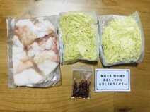 キャベツ、ニラ、もやし、豆腐、ニンニクを準備して、レシピ通りに作りました。