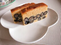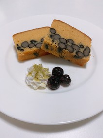 丁寧に炊かれた黒豆が上品な甘さでスポンジ部分とのバランスが良く、あと引くおいしさです。主張しすぎないシンプルな味なのでどんな飲み物にも合いそうです。