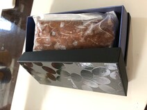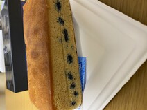 開封すると、バターのとても良い香り。ずっしりとした重みでしっとりしたけーきです。