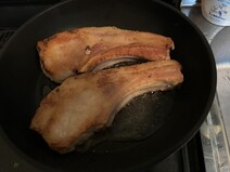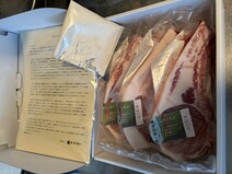 厚みが一番厚いところで3cm以上もあり、こんな立派な豚の骨付きロースやロース自体、売られているのを見たことがありませんでしたので、テンションがあがりました。