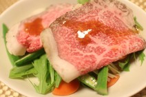 開けた瞬間「1枚1枚が大きい!」と驚きました。既にカットされた状態で届くって嬉しいですね^ ^分厚さを調整しながらスライスするのは意外と難しい為、助かりますし、作っている方のおすすめの分厚さでいただけるのが1番です。解凍は、冷蔵庫で一日かけて行いました。解凍後のお肉の断面の美しさにもうっとり。この絶妙なレア加減がたまりません。今回は、そのまま、丼、オリジナルソースの3つの食べ方でいただきました。まずはそのままでお塩とワサビをつけていただきます。お肉一枚をお箸で持ち上げ、その大きさに夫が「これ半分にカットしようかな?」と言うほどの大きさ。ずっしりのボリュームがあります。「でもせっかくだから一口でいこうよ!」と....食べて、その柔らかさと旨みの強さに衝撃を受けました。きめ細かく、口の中でとろけていきます。仙台牛ってこんなに柔らかいんですね!旨みがぎゅううと閉じ込められています。そのまま食べても下味がついている為、美味しくいただけます。仙台牛本来の味を楽しめるこの食べ方、おすすめです。それにしても一枚一枚が大きい!一枚での満足感が半端無いです。でも美味しすぎて、一枚じゃ足りない!