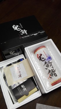 まず立派な箱で届きました!黒の箱が高級感があります。そして手土産にも丁度よい大きさ。取り出すとズッシリ重みがあります。お醤油も2袋入っています。