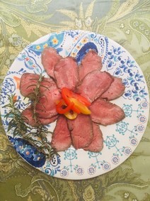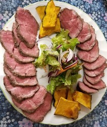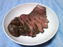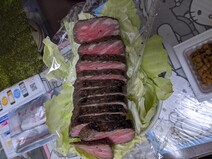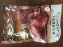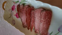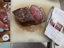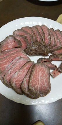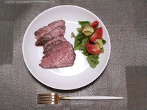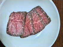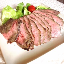 解凍してカットし、ローストビーフを頂きました。お肉自体がとても柔らかくて食べやすいというのが第一印象です。味付けはやや控えめなものなので、牛肉の旨味が十分に感じられる仕上がりになっていると感じました。付属の「八雲塩」を添えてみるとそれだけで一気に品の良さが増したような雰囲気です。「八雲塩」は四角い小さな瓶に入っていてとてもお洒落な雰囲気です。この「八雲塩」を付けて頂くとローストビーフの旨味がさらに引き立って美味しく味わうことができました。
