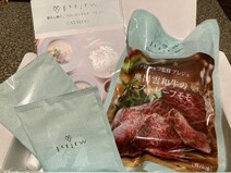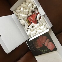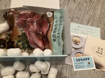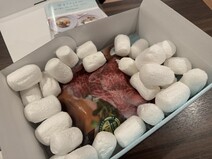 まず届いたパッケージを見てみると、白い箱に赤系統の線というシンプルながら気品を感じるものになっています。箱を開封すると、ローストビーフ・八雲塩・しめ縄飾りがそれぞれ入っています。大変上品な雰囲気なのでギフトにも喜ばれることでしょう。