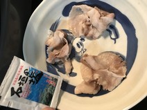 しゃぶしゃぶ鍋に南ぬ豚をおよがせて、ホームページに記載のあった、「塩をちょっとつけて食べる」という方法でそれぞれ食べてみました。