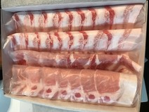 冷凍便で届いた箱を開けると、3種(バラ・ロース・肩ロース)の南ぬ豚がそれぞれシートに挟まれて取り出しやすかったです。