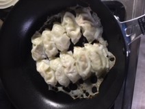 焼き方は、冷凍のままフライパンに並べ、多めの水を入れ、蒸すように焼く方法。戸惑いもありましたが、出来上がった様子を見て納得。蓋を開けると、身はふっくら、羽はこんがりと焼けていました。