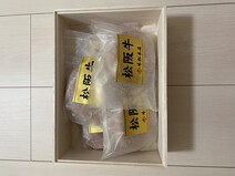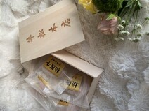 桐箱に黄金色の包装紙という豪華な装いで、開ける前からワクワク感が高まります。贈り物にも、自分へのご褒美にもぴったりです。