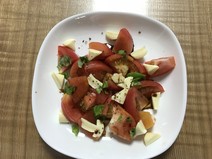 2つ目は夏野菜のアヒージョ。これも熱したオイルにナス、ズッキーニ、トマトなどを入れるだけ。様々な野菜のおいしさを気軽に味わえました。特にナスがオススメ。オイルのコクが加わったとろとろのナス、口の中が幸せですよ~。