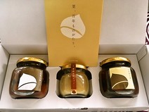 各々全て、金色の栗のシールが貼られていて、高級感タップリです。瓶もコロンと丸みを帯びた形状で、可愛らしいです。