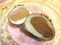 トリュフを思わせるようなデザインの生チョコ大福。チョコレートのトッピングがおしゃれで金粉がちょこっと乗っているのも品がよく素敵でした。