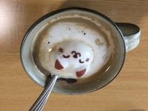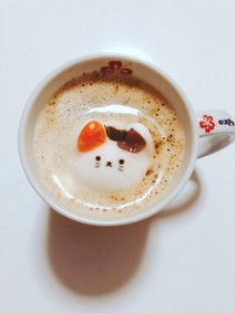 おうちにあるコーヒーをカップに注いでいざラテマロを浮かべます。するとなんということでしょう♪マシュマロがしゅわしゅわと溶けていき、みるみるうちに美味しそうなラテに♪