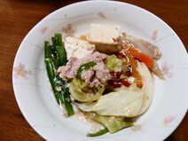 スープの中にもゴボウやニンジンが入っているし、キャベツも沢山入っているのでもつだけでなく、お野菜も楽しめました。