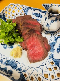 ウチモモ肉ということで、ロース肉のローストビーフより固いのではと思っていたのですが違う柔らかさです。