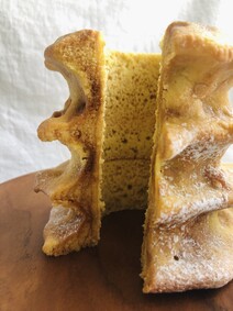 食べてみると周りはサクッと中はしっとりとした食感で今まで食べてきたバウムクーヘンとは全然違うなと思いました。しっとりしていて、甘さもしっかりとあるのに食べやすく、さらには食感が独特で病みつきになり、美味しい美味しい言い合いながらいただきました。