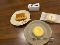 私の場合は、まず、和紙で個包装されていて、一見すると和菓子かと思う「文助の半熟チーズケーキ」からいただきました♪