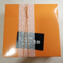 しっかりした紙袋から中身を取り出し、ぐるりと巻いてあった緩衝材(プチプチ)を外すと、ショップさんのサイトで紹介されている通りの、ビタミンカラーのオレンジ色の化粧箱が確認出来ました。ここで2枚の目写真を撮りました。