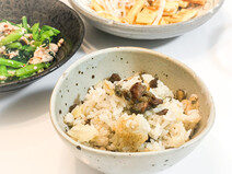 炭火で焼いた鶏肉をご飯と一緒に炊き込みだけで簡単に出来上がり