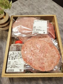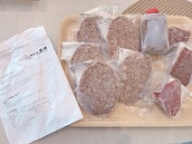 ステーキは解凍が必要なので冷蔵庫へ。ハンバーグは解凍不要でそのまま冷凍庫に入れておきます。