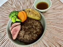 肉汁たっぷりのやわらかハンバーグに付属のソースが高級感をプラスしてくれます。