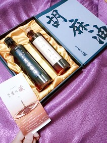 開封してみると箱には胡麻油と大きく筆で書いたプリント。商品に対しての自信が感じられます。そして肝心な胡麻油というとゴールドの布に包まれており、これまた高級感がたっぷり。贈答用にももちろん良いですし、自分で購入しても大変テンションの上がる素敵なお品です。