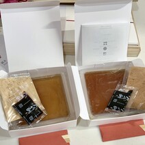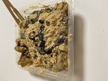 中には「きな粉味」と「黒糖きなこ味」の2種類が各2個ずつ入っており、それぞれに黒蜜ときな粉の個包装が入っていました。