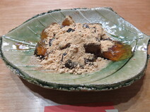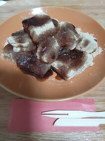 一口大にカットして、きな粉と黒蜜をかけていただきました。
