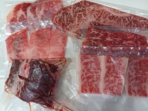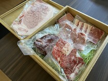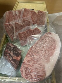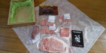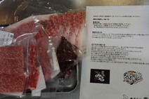 不織布の布地に包まれて、ベージュの高級そうな発泡スチロールに敷き詰められてお肉とツケダレ等が入ってました!良く聞く名前のものもあれば、こんな名前の部位もあるんだーと初めてのものもしばしば。