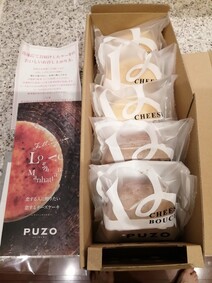 ダンボールを開封してみると、商品(プレーン3個とティラミス2個)と店舗の情報などが記載された物が入っていました。