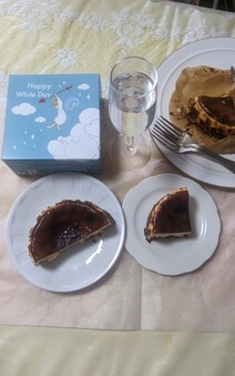 ひと口食べた瞬間、私も旦那さんも思わず「えっ…おいしい…!」と声が出るほどの衝撃。これまで食べてきたバスクチーズケーキの中でも、一番好みの味でした。表面の香ばしさと中のとろける濃厚さのバランスが絶妙で、後からふわっと広がる余韻が大人の風味をプラスしてくれます。