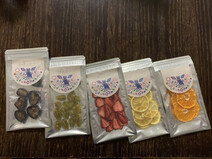 季節ごとに5種類のドライフルーツが楽しめます。今回はイチゴ、ピオーネ、シャインマスカット、レモン、みかんの5種類でした。