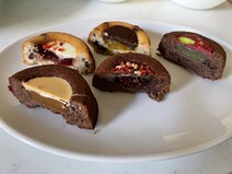 ショコラオランジュは、ビターなチョコレートと爽やかなオレンジの香りがマッチして、サッパリとした香り豊かな味わいでした。ホワイトベリーは、ホワイトチョコレートが生地と相性良く、甘すぎずにストロベリーの香りが広がって大人の味でした。ブランドキャラメルが1番お気に入りで、ショコラの甘さを塩キャラメルが引き立て、口いっぱいにキャラメルとバターの香りが広がりました。ベリーピスタージュは、濃厚な味わいでピスタチオ好きにはたまりません。ショコラフランボワーズは、ジャムの酸味が程よく、果実感もあり、ショコラ生地がとにかく濃厚でとっても美味しかったです!