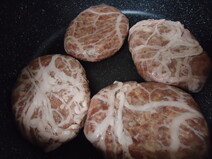弱火で焼いていくと、だんだんハンバーグにハリがでてきてパンパンになり、今にも肉汁がでてきそうですが、網脂のおかげで旨味が逃げずに閉じ込められています!レシピに火加減、調理時間が詳しく記載されているので、慌てずに調理できます!