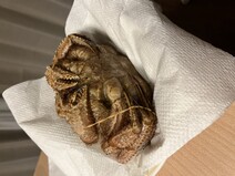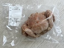 蟹は厚手のキッチンペーパーで包み、甲羅を下にして冷蔵庫で解凍。我が家の冷蔵庫では、1日では溶けなかったので、1日半かけて解凍しました。